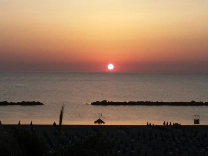 Dopo la colazione generalmente partivamo per la passeggiata sulla spiaggia del mattino, le bambine negli zainetti (per spostarsi, sicuramente il mezzo più comodo ed agile, non è pensabile, almeno per noi, scendere in spiaggia con il passeggino, e avere l’appartamento molto vicino alla spiaggia dava questo vantaggio), e camminavamo per chilometri lungo il litorale, il piacere dei piedi nella sabbia, del rumore delle onde, e abbiamo avuto anche la fortuna di avvistare dei delfini! Uno degli elementi che ci ha fatto scegliere San Benedetto del Tronto come meta di vacanze è infatti la presenza di una lunga spiaggia con impianti balneari ben attrezzati, non particolarmente affollati (nella stagione da noi prescelta, ma dalle informazioni raccolte mi risulta non essere particolarmente affollata nemmeno in alta stagione), con tutti i comfort necessari. Il nostro residence offriva nel prezzo anche un ombrellone e due lettini da spiaggia. Dopo la passeggiata infatti riposavamo all’ombra del nostro ombrellone fino alle 11 circa, per poi tornare in camera per evitare il calore delle ore centrali della giornata. Al pomeriggio ritornavamo in spiaggia fino al tramonto.