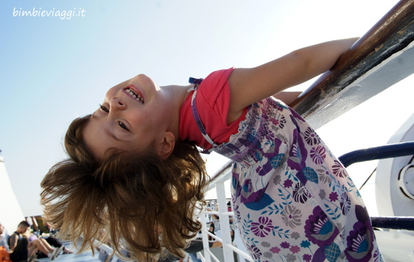 Bisogna però considerare che gli spazi in nave sono molto ampi (noi abbiamo viaggiato sulla Mega Express 3) e anche con i bimbi piccoli si può passeggiare tranquillamente oppure posizionarsi all’aperto e godersi l’aria di mare.