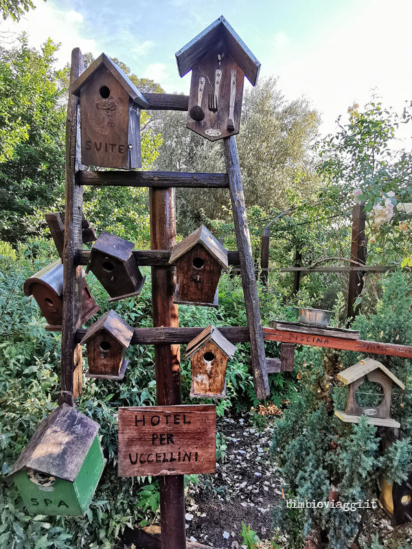 Vicino alla reception sono presenti due alloggi molto particolari: un hotel per uccellini e uno per insetti!