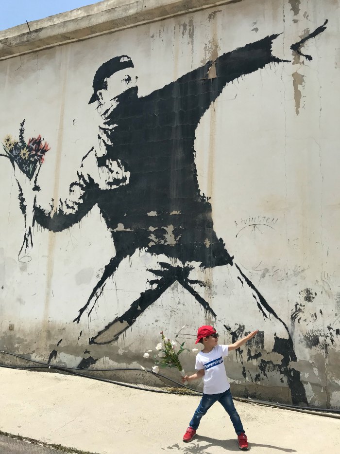 Al mattino prendiamo taxi per andare alla porta di Damasco, da qui partirà il pullman che in meno di mezz’ora ci porterà a Betlemme. Il giorno prima avevo prenotato via mail il tour dei graffiti di Bansky direttamente con l’albergo The Walled Off per cui ci rechiamo subito lì a piedi. Incontriamo anche due coppie di ragazzi di Milano molto simpatici che saranno i nostri compagni di avventura della giornata. Arrivati in albergo (tra l’altro…bellissimo!) troviamo un taxi ad aspettarci che ci porterà per un’oretta in giro per la città a vedere i famosi graffiti (1 taxi= 100 ILS).