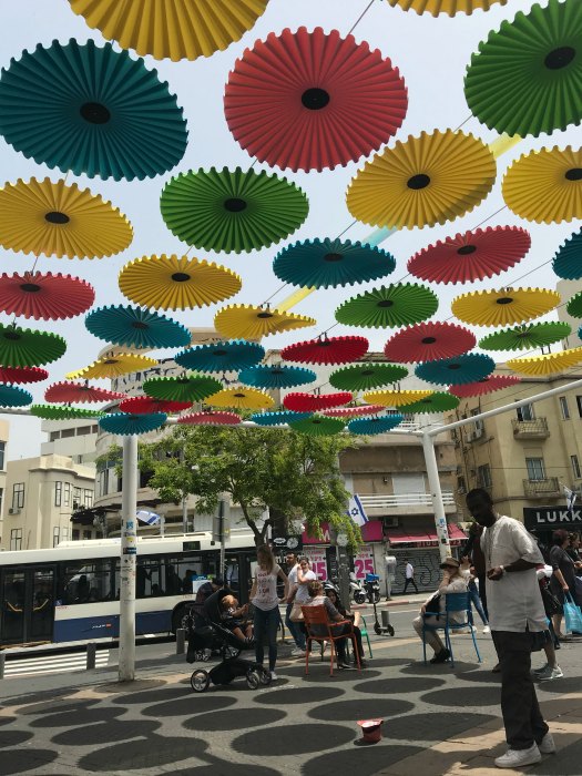 Ci rechiamo a piedi a visitare un po’ la città, dopo una fantastica colazione a base di pancake giganti da Benedict facciamo tutta Rothschild road per poi finire al mercato di Carmel, dove mangiamo un’ottima Shakshuka (specialitià del posto a base di uova e pomodoro) e compriamo pane, olive e formaggio che poi ci gustiamo lungo mare. Non sono però particolarmente in forma, per cui passiamo il resto del pomeriggio lungo mare a giocare in un playground. Alle 18 il nostro taxi passa a prenderci e andiamo in aeroporto, per una volta ci siamo tenuti del tempo per i famigerati controlli in uscita. Tempo dedicato al controllo: 6 minuti netti, ci sono quasi rimasta male.