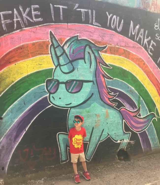 partenza per Tel Aviv, decidiamo di andare con il pullman, forse il taxi collettivo sarebbe stato meglio. In ogni caso raggiungiamo il nostro albergo Rena’s House (zona perfetta, appartamento fichissimo super trendy con vecchio giradischi in camera, kit per bimbi con colori e adesivi e possibilità di prendere giochi spieggia/materassini in prestito – unico problema, la sera un po’ rumoroso). Dedichiamo il pomeriggio a gironzolare per Florentin, il quartiere hipster pieno di murales super colorati. La sera andiamo a cena a Jaffa – ristorante Puaa super carino – dove incontriamo anche un amico di Gaetano che vive in città.