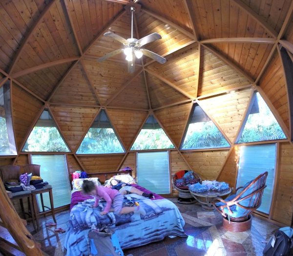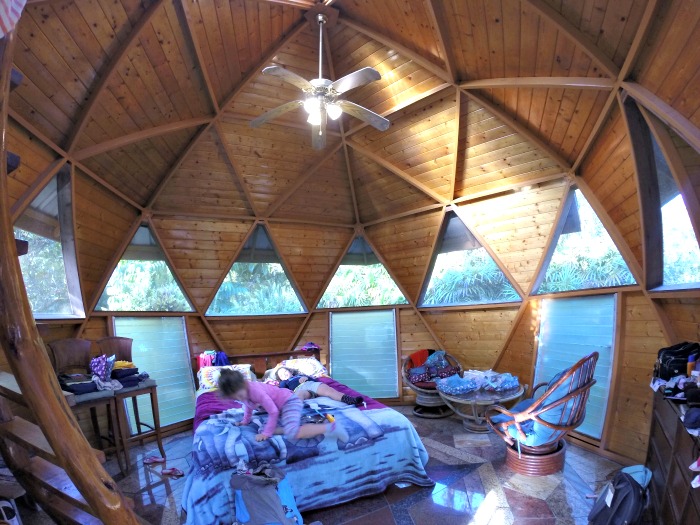 Dopo aver passato qualche giorno nella zona si capisce meglio il contesto. Quella che noi chiamiamo foresta è una zona rurale. La casa non è isolata, ce ne sono altre nei dintorni, ma la vegetazione è molto fitta e non si vedono. Inoltre la zona non è urbanizzata con strade, lampioni e fognature. Soggiornare in quest’area significa abbracciare quel che rimane della cultura hippie: vivere lontano dalle formalità sociali, cercando di auto sostenersi. Da qui derivano molte caratteristiche della casa: costruita a mano (quindi finiture alla buona), elettricità dall’energia solare (quindi no elettrodomestici o asciugacapelli), acqua dalla pioggia (depurata ma comunque non da bere). Doccia calda e fornelli sono garantiti dalla bombola del gas, mentre un’accortezza speciale serve per il bagno in cui non bisogna gettare nulla, la carta igienica va nel cestino (come in barca, per chi ha dimestichezza).
