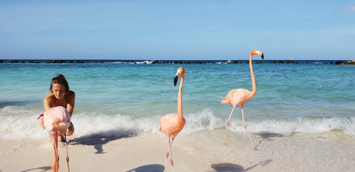 L’ultima notte ad Aruba la passiamo invece presso il Renaissance facente parte del gruppo Marriott (prezzo decisamente più alto, circa 250 Euro per la sola stanza, senza colazione) con il solo scopo di avere accesso a Renaissance Island, isola privata di proprietà dell’hotel, raggiungibile in motoscafo, sulla quale è possibile fare incontri ravvicinati con i fenicotteri rosa che abitano Flamingo Beach.