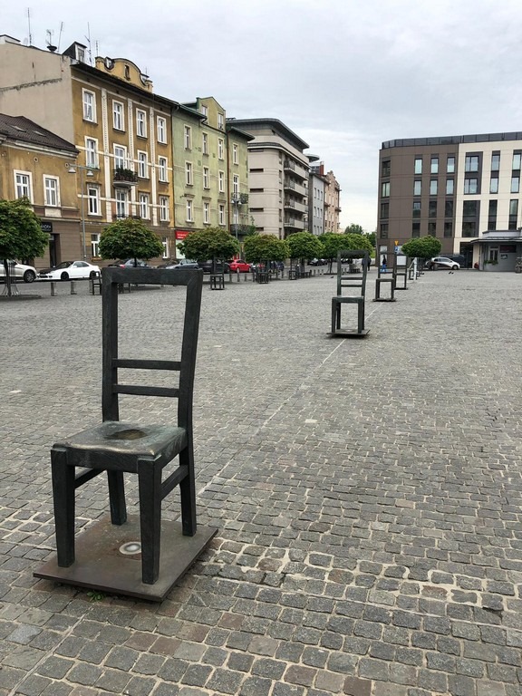 Oltrepassando uno dei ponti sulla Vistola si giunge all’altro quartiere ebraico, il Podgorze dove oltre ad una serie di sinagoghe merita una menzione la Plac Bohaterów Getta, una piazza dal fondo in pavè che ospita una scultura composta da 70 sedie, pare che i due scultori siano stati ispirati da una foto che ritraeva un bambino trasportare questa sedia durante la deportazione nel ghetto. Passando al quartiere di Zablocie l’attrazione principale è la Fabbrica di Schindler, ad oggi riconvertita in museo sull’occupazione tedesca di Cracovia.