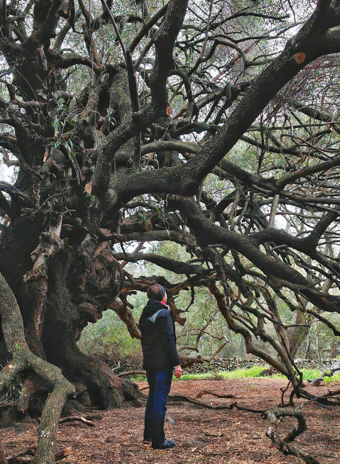 Non lontano dal Patriarca Verde c’è un altro olivastro di 2mila anni, alto 8 metri e sotto al quale è possibile passeggiare. Poco più un là, un altro giovinetto di “soli” 500 anni.