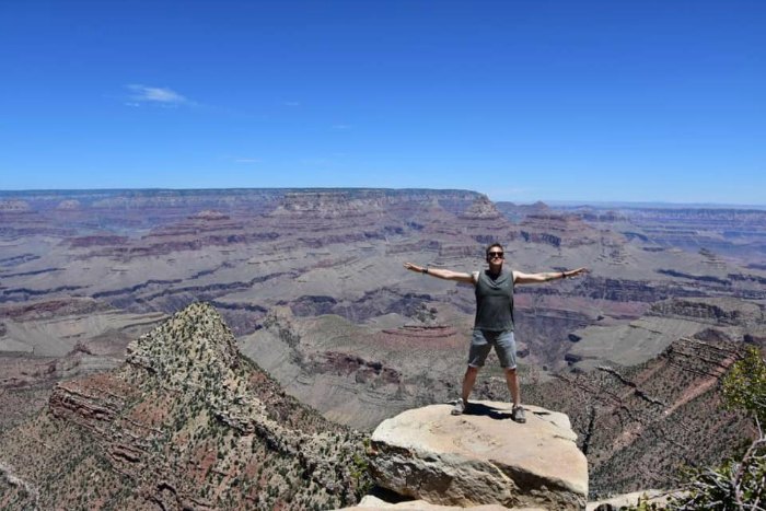 Il giorno dopo ripartiamo e le prima tappa è il Grand Canyon, è stato l’unico parco dove abbiamo fatto un po’ di coda per entrare, ma ci mettiamo il cuore in pace e aspettiamo. Facciamo il South Rim, scendiamo dalla macchina per la prima visita al Pipe Creek e… WOOOOOOOOWWWWW L’immensità del Canyon si apre davanti a noi. La sensazione è proprio quello che ti toglie il fiato, probabilmente anche perché noi siamo abituati a vedere le montagne che vanno verso il cielo ma qui invece sei nel cielo e sotto di te c’è un precipizio infinito.