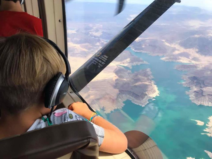 Cosa dire? Il sorvolo è emozionante in quanto dall’alto percepisci un po’ di più l’immensità di questo posto. Abbiamo tutti le cuffie sia per il rumore che per ascoltare l’audio guida (anche in italiano) che dà indicazioni su quello che vediamo sotto! Il canyon, ma anche i vuoti d’aria (immaginatevi di volare su un tagadà con le ali), ci lasciano davvero senza fiato.